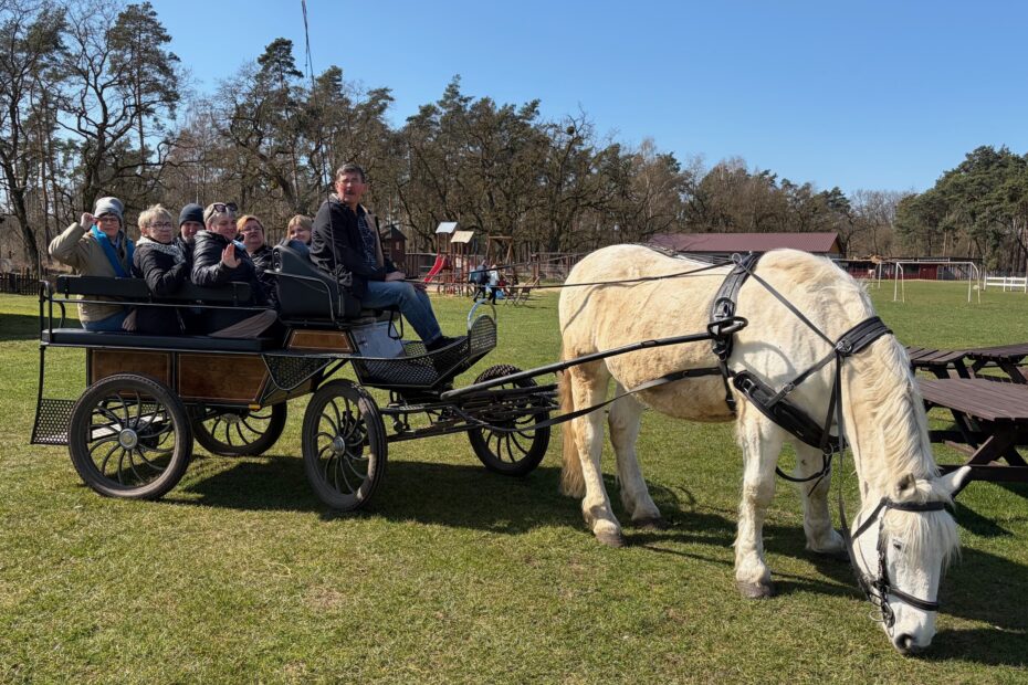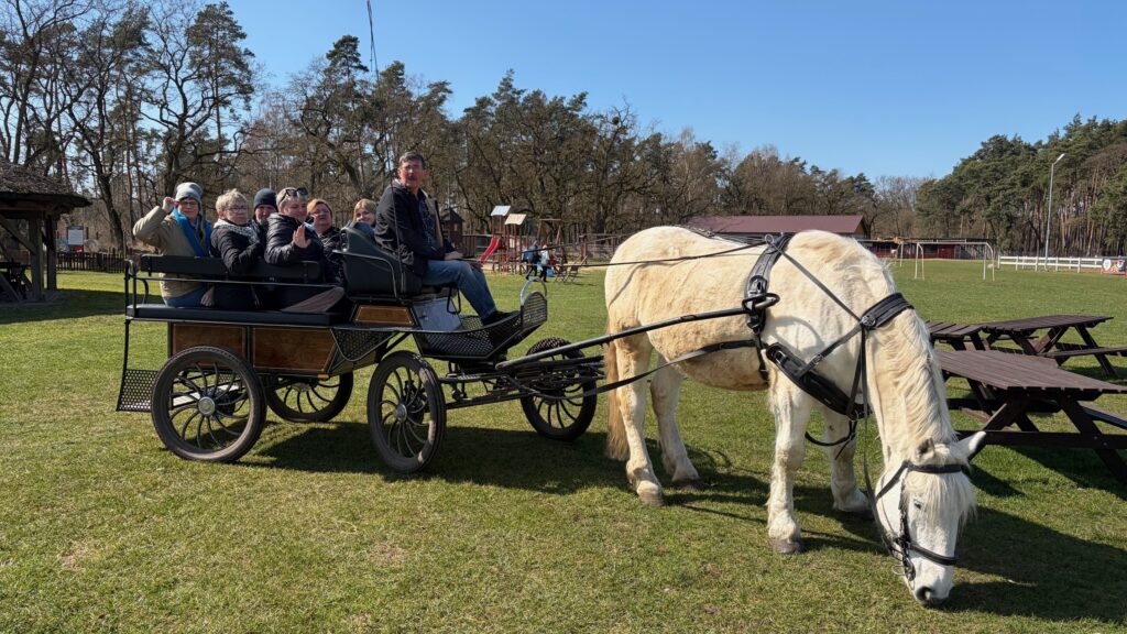 Uczestnicy ŚDS Jarocin świąteczny czas rozpoczęli wspólnym spacerem edukacyjnym, podczas którego była okazja obcować z budzącą się do życia wiosenną roślinnością i przebywania wśród różnorakich zwierząt. W trakcie spotkania z edukatorem w Folwarku Konnym w Hermanowie poruszono tematy dotyczące znaczenia natury w naszym życiu, był czas na ciekawostki przyrodnicze i ekologiczne. Po spacerze edukacyjnym wszystkim wyostrzył się apetyt, więc rozpoczęła się biesiada przy wielkanocnym stole. Nasze spotkanie swą obecnością uświetnili goście z Zarządu Jarocińskiego Stowarzyszenia Pomost, którzy złożyli uczestnikom i rodzinom życzenia świąteczne.