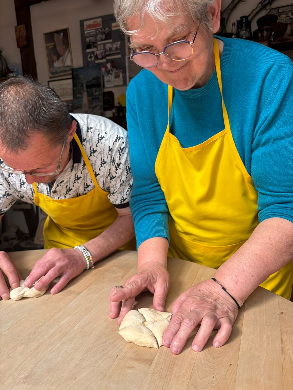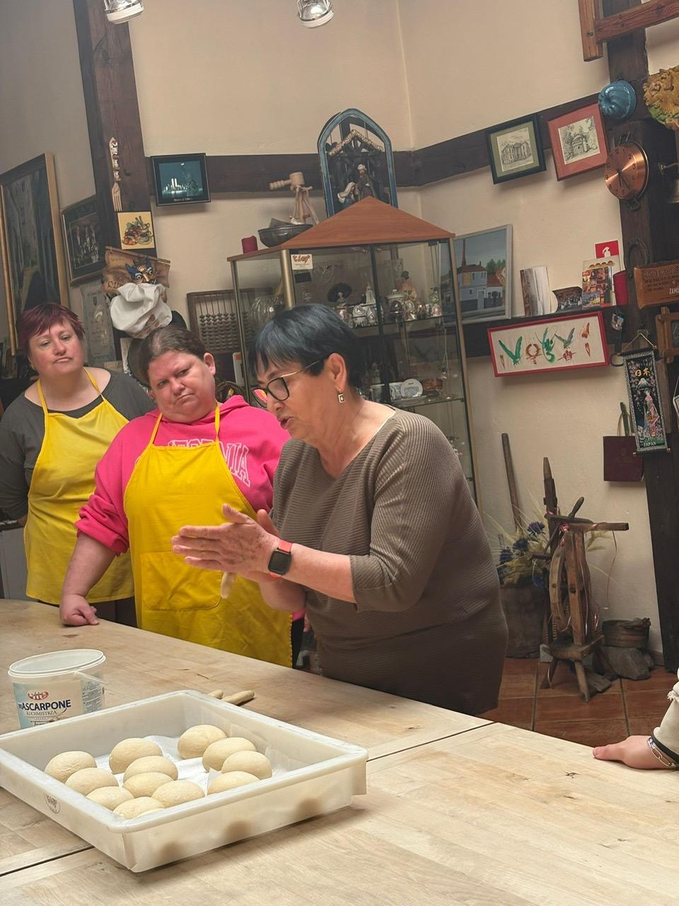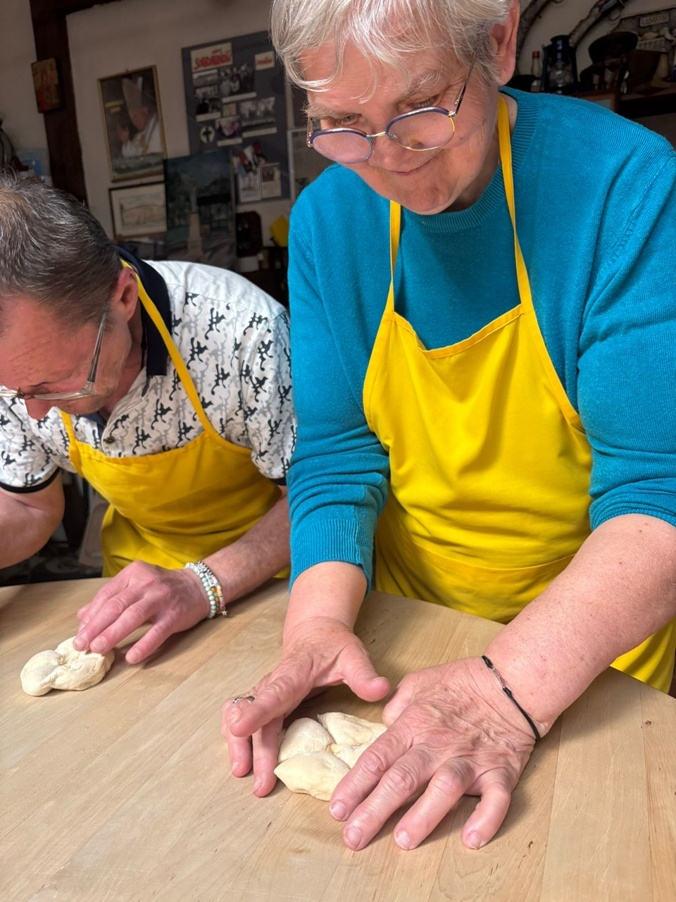 Podczas wizyty była prelekcja dotycząca historii piekarnictwa, zapoznanie z dokumentami, fotografiami sprzed lat oraz warsztaty wypieku bułeczek i ciastek.